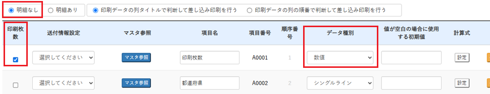 なお、「印刷枚数」を設定した項目はテンプレートフォーム上に配置する必要はありません。配置されていた場合は、印刷データ内の値がそのまま差し込みされます。